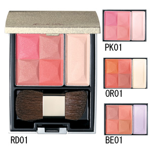 血色感を出すアクセントカラー2色、柔らかさを出すナチュラルカラー。さらに右側に最後に重ねるヴェール色をセットし、透明感&立体感を演出!