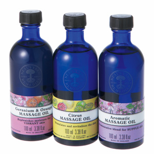 (右)アロマティック マッサージオイル(中)シトラス マッサージオイル (左)ゼラニウム&オレンジ マッサージオイル