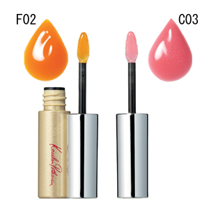 ジューシーな仕上がりのリキッドルージュ。F02は肌を明るく見せるイエローマンゴー。C03はピュアな唇を作るストロベリーピンク。