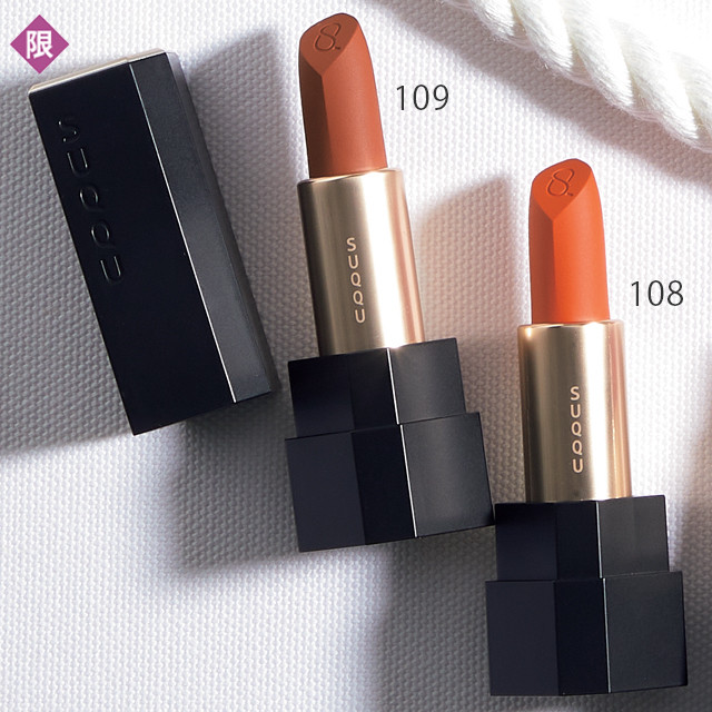 “透けるマット”質感が人気のリップにビタミンカラーが! 108はオレンジのワントーンメイクにもおすすめ。