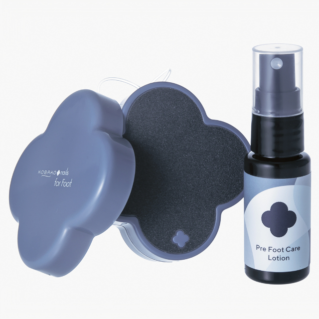 かかとを柔らかくして削りやすくするためのローション(30ml)と、粗目&細目の2面構造のかかとやすり(限定デザイン)のセット。粗目面でかかとの表面を削った後、ローションを浸透させ、細目面で角質を削ると、サロン仕上げのようなツルツルなかかとの完成!