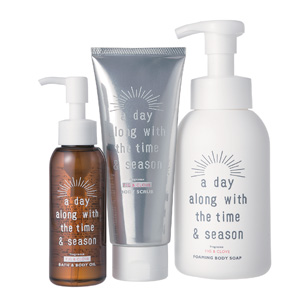 a day(右)フォーミングボディーソープ (中)ボディースクラブ (左)バス&ボディーオイル