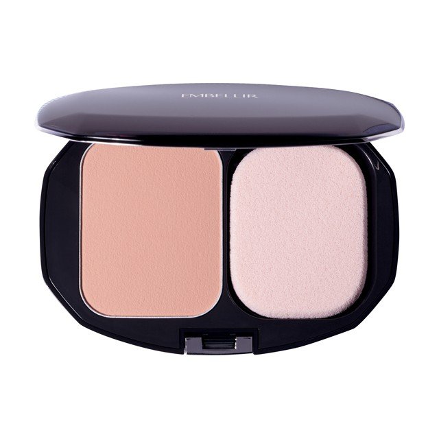 美肌効果の高い『霊芝エキス』を配合したエイジケアパウダリー。「光と影のコントラストで、頰は高くフェースラインは引き締まった若々しい肌印象へ」(PR 梅垣麻甫さん)