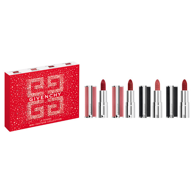 鮮やかな発色と潤いが持続する「ルージュ・アンテルディ・シルキー」と、軽いつけ心地でナチュラルマットの唇をかなえる「ルージュ・ジバンシイ・シアー・ベルベット」のミニサイズがキットになって登場。深みのあるレッド系~肌に溶け込むピンクベージュまで、人気のシェード計4本をセットに。ミニバッグやポーチに入れてもかさばらないサイズ感で、もち運びにも重宝すること間違いなし! 大胆なブランドロゴが刻まれたレッドボックスはギフトにも最適。