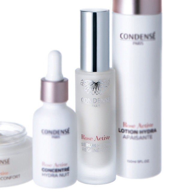 花びら、葉、茎すべての部位にパワフルな有用成分を含有するローズ。これを最新のテクノロジーで処方した、新プレミアムエイジングケアプログラムが誕生。右から、化粧水、タイトニング乳液、夜用美容液、リッチな質感のクリーム。ライン使いで、肌本来の美しさをよみがえらせる。