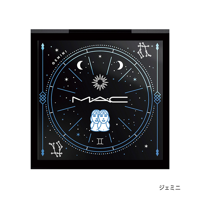 12星座のイラストと天体図が描かれたケース。スモール アイシャドウ ×4をセットして。