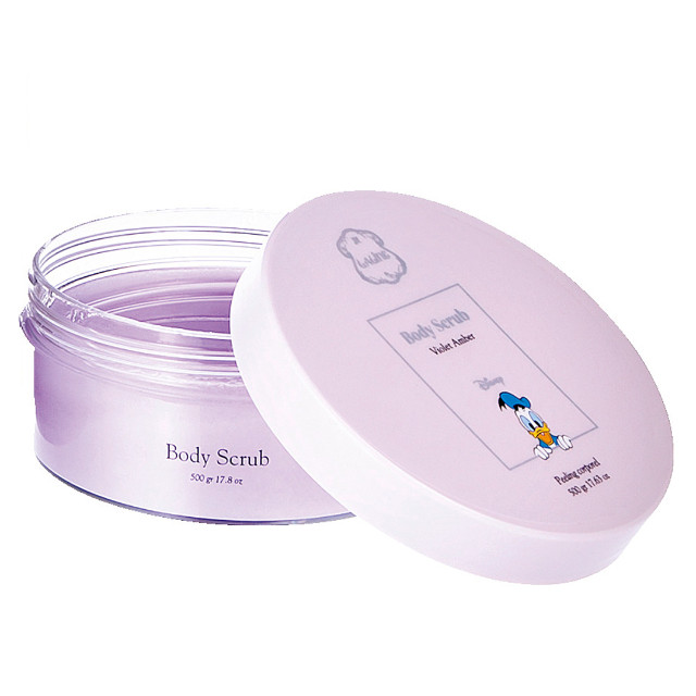 気品あふれる“バイオレットアンバー”の香りのボディケアアイテムが、ディズニーデザインに。肌を潤しながら磨き上げるスクラブ。