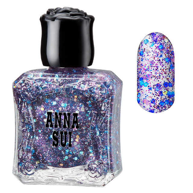 ラメを自由自在にトッピングできる「ネイルカラー トッパー」に、ファンタジックなきらめきをもたらす限定カラーがお目見え。ラメをしっかりととらえて、狙い通りにアレンジできる<ドロップ型チップ>を採用。214はブルーやオーロラの六角ラメをブレンドし、夜空に輝く星を表現したカラー。単色でも、手もちのネイルと重ねても違った表情を楽しめます。