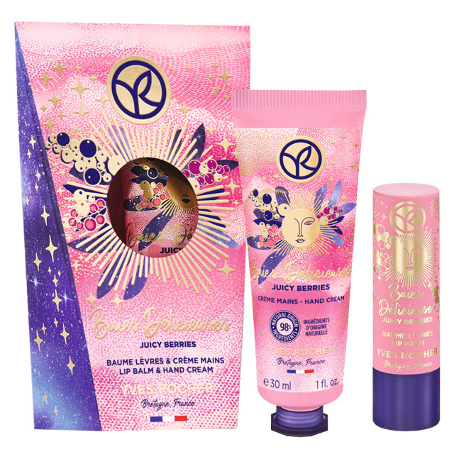 乾燥の気になるこの季節、手肌や唇をたっぷりの潤いで満たすコフレが登場。さらりとした軽やかなテクスチャーで包み込むハンドクリームと、唇と一体化するように溶け込むリップクリームをセットに。弾けるようにジューシーなベリーの香りに癒されて♪ ホリデー感たっぷりのスペシャルボックスつき。