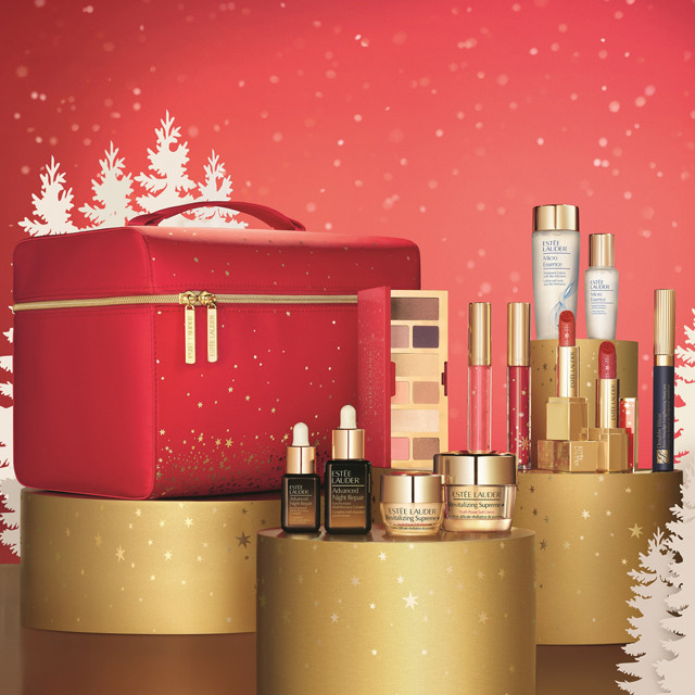 エスティ ローダーのホリデーコレクションを象徴する「メークアップ コレクション」が今年も登場。クリスマス気分を盛り上げるレッド トレイン ケースに、さまざまなルックが楽しめるアイシャドウパレットやリップ、マスカラのほか、人気のスキンケアアイテムのミニサイズがイン。スキンケアは、同アイテムのサイズ違いもあり、より小さめのサイズは持ち運びにも便利。ギフトにも自分へのご褒美にもぴったりのコフレです。