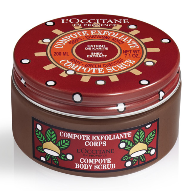 ロクシタンの2022年ホリデー限定コレクション「アップルマロン シア」のボディスクラブ。植物由来のスクラブが肌を守りつつ、しっかりと角質をケア。ジャムのようななめらかなテクスチャーも魅力です。アップルとマロンのおいしい香りも楽しんで。