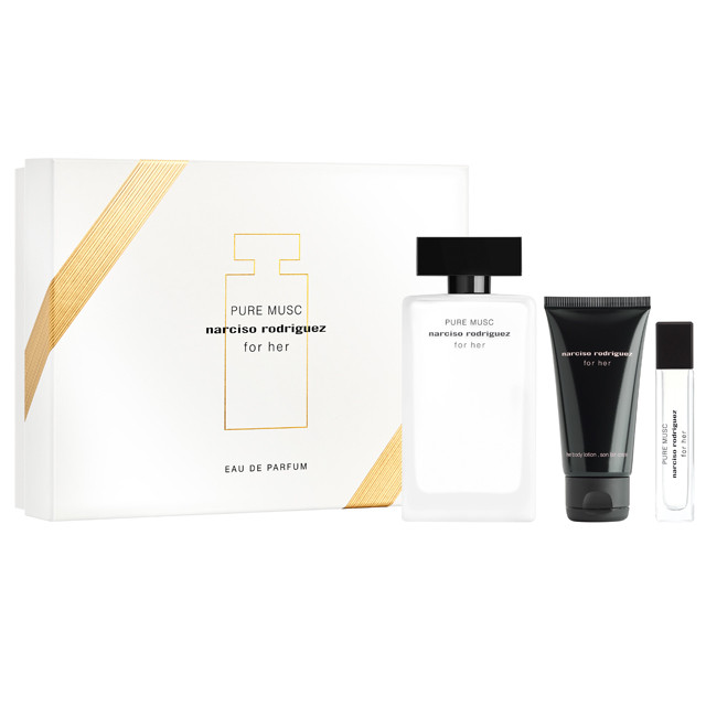 ナルシソ ロドリゲスのフレグランス「フォーハー ピュア ムスク オードパルファム」をメインにしたコフレ。ホワイトフローラルからムスクに変化するピュアな香りが特徴です。2022年ホリデーコレクション限定で発売されるのは、フレグランス現品とミニサイズ、さらに、ブランドのアイコン的フレグランスである「フォーハー」のボディローションのセット。お気に入りの香りを持ち歩きたいという人にぴったりのコフレです。