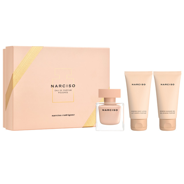 ナルシソ ロドリゲスのフレグランス「ナルシソ」をもとに作られた「同 オードパルファム プドゥレ」のコフレが登場。ソフトでパウダリーなムスクを中心にホワイトジャスミンやブルガリアンローズが香るセンシュアルな香りが特徴。「ナルシソ」の香りのボディローションとシャワージェルがセットになったお得なコフレです。
