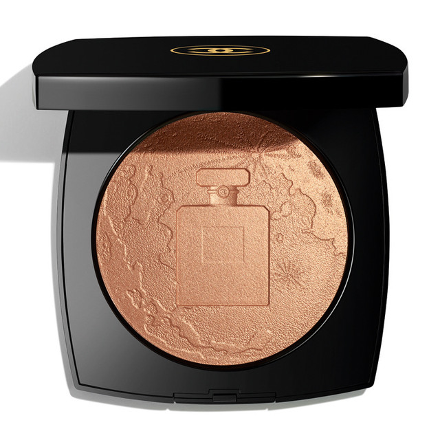 <月>の表面を模したテクスチャーの表面に、ブランドを代表するフレグランス<シャネル N°5>のエンボス加工が施されたフェースカラー。繊細なパール入りのパウダーが肌に溶け込み、自然なツヤ感のあるヘルシーな印象を与えます。