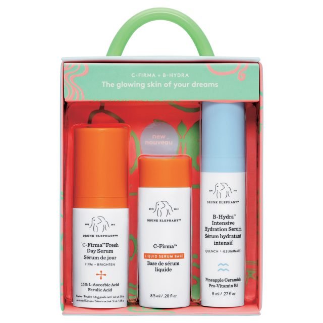 朝用は、水分補給に特化したジェル状セラムと、No.1人気のCセラム(リキッド&パウダーを混ぜて使用)の2種のミニサイズのセット。