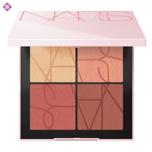ORGASM(右上)と深みのあるピンクトーン2色、ゴールドに輝くハイライターがひとつに。なめらかに艶めく頰を演出する。