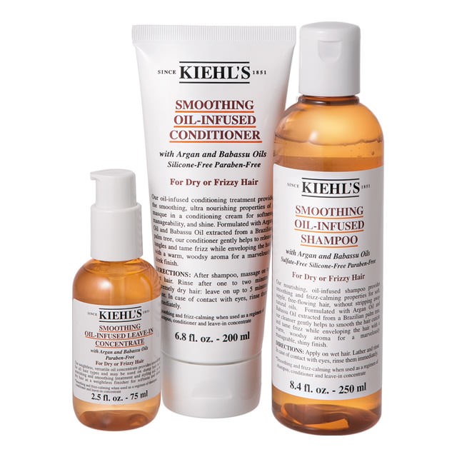 美容オイルを研究してきたキールズは、エイジングによるうねりやくせにアプローチしたヘアケアを開発。主な原因である髪の水分バランスの乱れを防ぐべく、髪の内側は保湿成分のババスーオイルで水分を保持。髪の外側はアルガンオイルで湿気からコーティング。