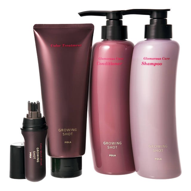 大人の髪をハリ・コシのある美しい黒髪に導くヘアケアライン。髪を補修しながらカラーリングするトリートメント、生え際や分け目の白髪を手軽にケアするブラシもおすすめ