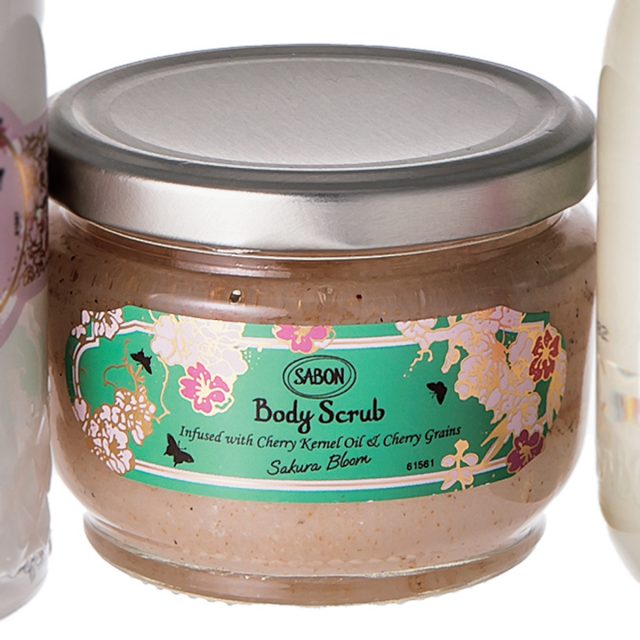 日本人がこよなく愛する“桜”をイメージしたフローラルグリーンの香調。つるすべ肌に磨き上げるスクラブ。