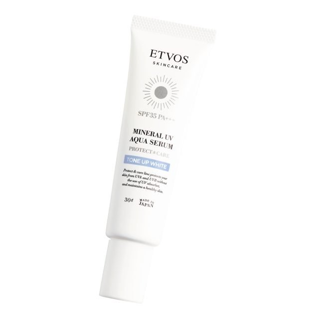日焼け止め・美容液・下地機能が備わった石けんで落とせる低刺激処方の日中用美容液。みずみずしい潤いで外的ダメージから肌を守り、カラーパールが明るく均一な透明感と毛穴カバー効果を発揮。「くずれを防いで、セミツヤ肌をキープ!」(PR ティシュキン 千晶さん)