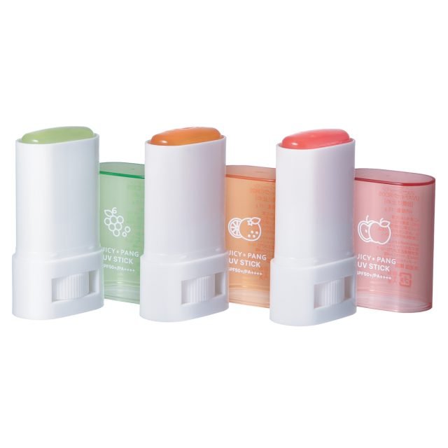 SNSで大反響を呼んだ、リンゴ・オレンジ・マスカットの香りのUVスティックが再販。その果物にちなんだ美容保湿成分をそれぞれにブレンド。さらに写真の3種のほか、甘ずっぱい香りの「パインアメ」とコラボレーションした新色もお目見え。