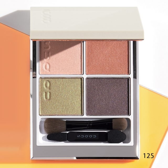 メインカラー(左下)に、偏光パールを贅沢に配合。同色系のマットカラー(右上)との組み合わせで魅惑的な目元に。