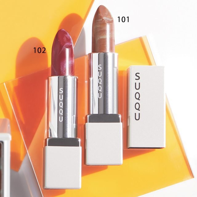 質感と明度の異なるふたつのカラーが混ざり合うマーブルリップ。唇に溶け込む、深すぎず明るすぎない絶妙な色合い。