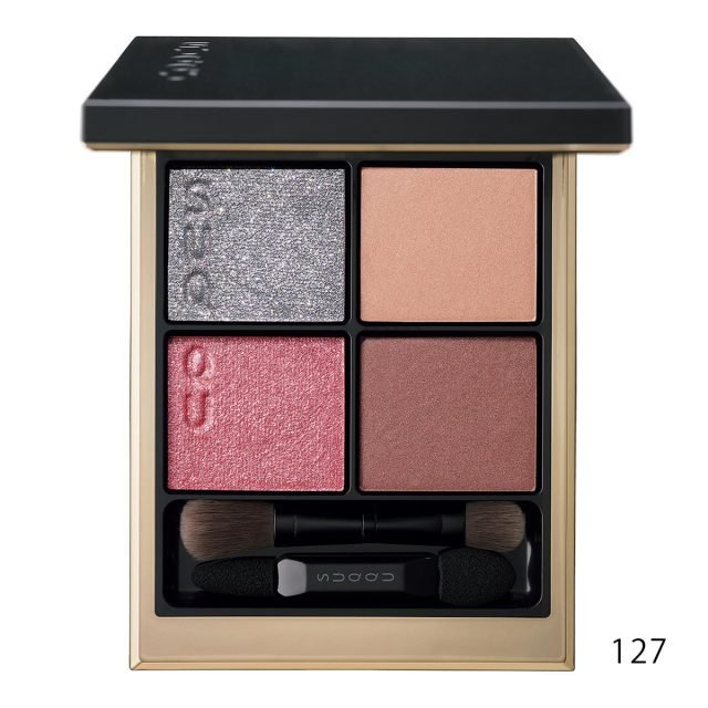 色彩のグラデーションが引き立つ4色パレット。左上のカラーをトップコートとして重ねると、目元に複雑な深みが出て洗練された雰囲気に。