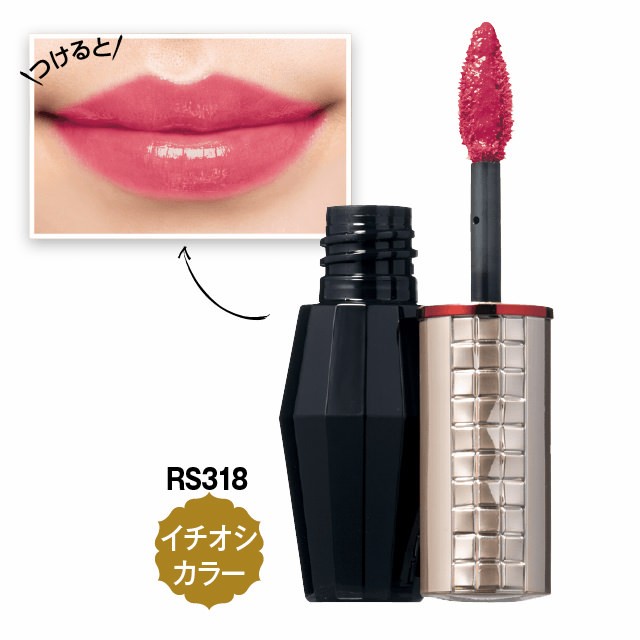 美容液成分を閉じ込めた濃密ジェルルージュで、ぷっくりとした美形唇へ。RS318は微細パールが瞬くセクシーなローズピンク。