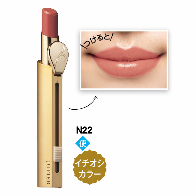 今季は、N22のヌードピンクがおすすめ。きちんと輪郭を描いて内側を塗ると、エレガントな口元に。N26はローズピンク。