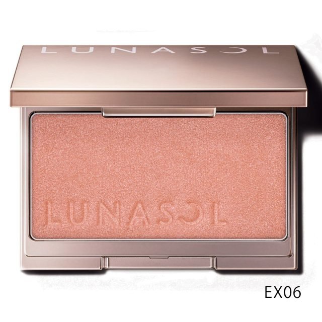 なじみベージュが頰に血色とツヤを与えながら、ナチュラルに骨格を引き立てる。EX06は繊細なゴールドパール入り。