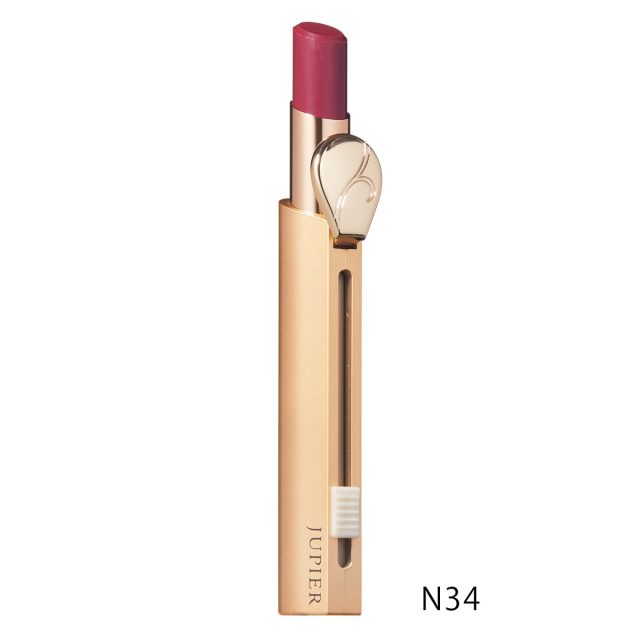 唇に潤いを与えて美しい発色とツヤをキープ。N34は肌に溶け込みつつクールさも演出する、落ち着いたピンクレッド。