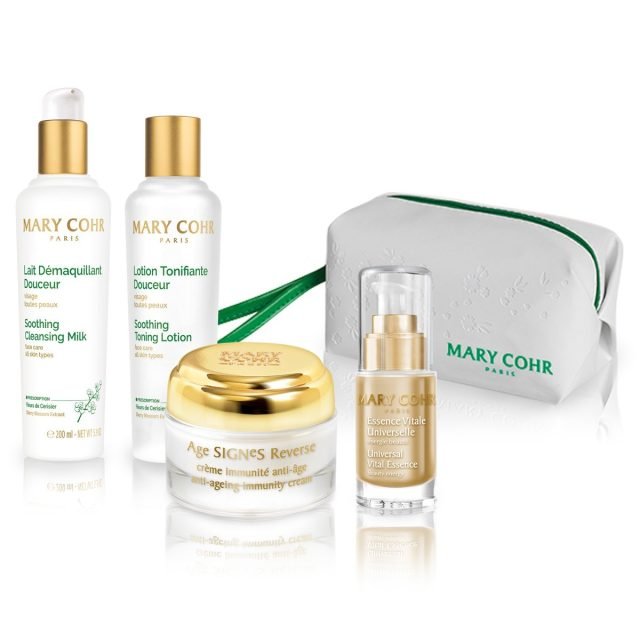 年齢を重ねた肌に潤いとハリを与えるブランド最高峰のエイジングケアクリームと、セージやラベンダーなど5種のエッセンシャルオイルを配合したブースター美容液がメイン。さらに、クレンジングや化粧水の現品もセットに。マリコールの人気商品を贅沢に堪能できる、スペシャルなセットです。