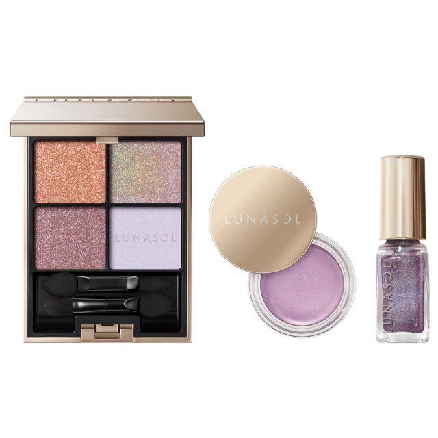 多彩なパール入りの4色が、華やかで幻想的な印象を与えるアイシャドウパレットがメイン。さらにまぶた、頬、唇とマルチにつかえるクリームタイプのパールカラーと、レッド&ゴールドのパールが揺らめくネイルカラーもセットに。冬の夜空に瞬く星のような、繊細なきらめきでホリデーシーズンを彩って。