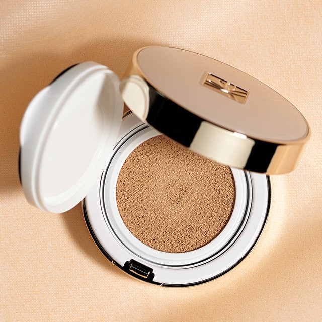 〝プラチナパウダー〟が肌のシミやくすみをカムフラージュ。発酵コラーゲンや米ぬかオイルなどが肌を優しく保湿し、艶やかに整える。「薄づきながらしっかりカバーし、スッピン美人肌に仕上げます」(PR 山田ちひろさん)