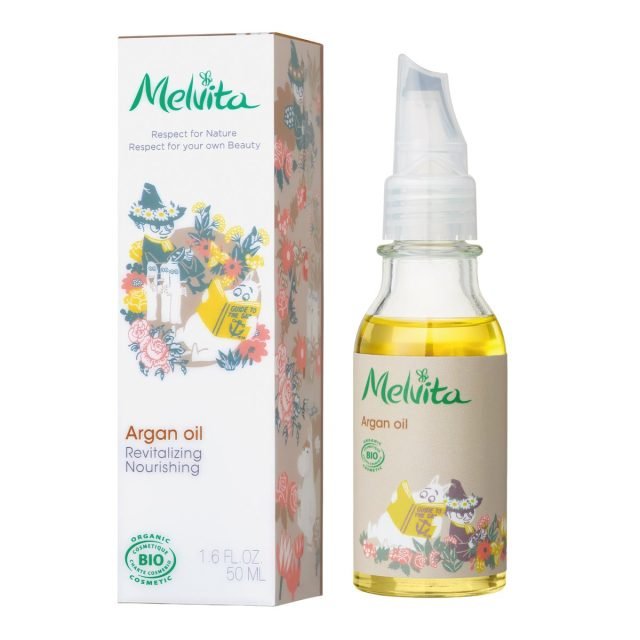 メルヴィータで人気NO.1を誇るアルガンオイルが、ムーミン&スナフキンが描かれたホリデー限定デザインになって登場。柔らかな色合いのイラストは見ているだけで、気分までほっこり。アルガンオイルは、モロッコのアルガンの木の実を低温圧搾して得た、いちばん搾りオイルを使用。ブースターとして使うことで、あとに使う化粧水やクリームの潤いを抱え込み、モチモチ肌へと導きます。顔だけでなく、ボディや髪のお手入れにも大活躍です。©Moomin Characters™