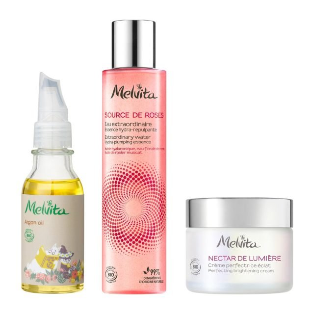 ビタミンEなどの美肌成分をたっぷり含み、顔、髪、体にとマルチに使える保湿力抜群のアルガンオイルが、ムーミン&スナフキンのホリデー限定デザインになって登場。さらに、潤いを取り込み、閉じ込める2023年9月発売の新感覚化粧水、光る海藻<ルミエールアルガ>配合で人気のブライトケアクリームもセットに。一緒に使って秋冬の乾燥シーズンも健やかな肌をキープ。