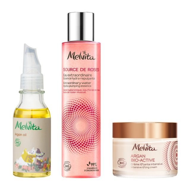 メルヴィータを代表するアルガンオイルがパステルカラーのムーミン&スナフキンの限定デザインに。全身に使え、しかも保湿ケアもエイジングケアもかなえます。とろみのある新作の化粧水はマイクロヒアルロン酸配合のアクティブウォーターが瞬時に潤いを与え、オーガニックローズヒップ配合のマイクロオイルが長時間潤いをキープ。<発酵アルガン>配合のクリームは肌を引き締め、ハリ感をサポート。素肌美人へと導く3アイテムのセットです。