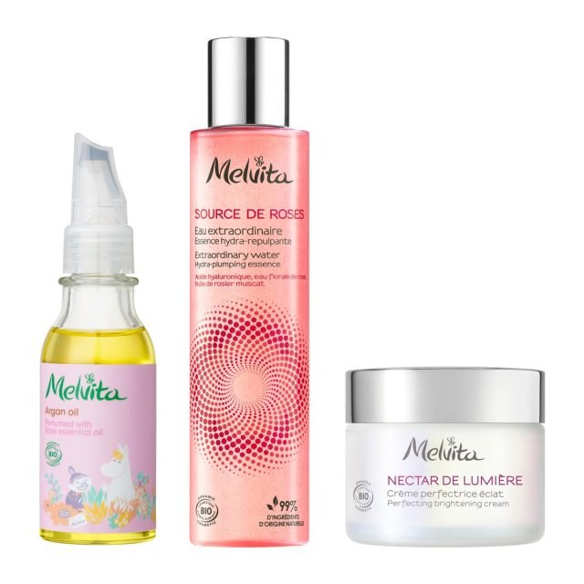 人気のアルガンオイルの保湿力はそのままに、ローズのエッセンシャルオイルをブレンドし、華やかな香りを楽しめるローズアルガンオイルがホリデー限定デザインに。描かれているのは、ムーミンのガールフレンドのスノークのおじょうさんと、絶大な人気を誇るミイ。潤いを与えて長時間保つ新感覚化粧水、くすみケアに定評のあるクリームを合わせて使って生き生きとした美肌印象を手に入れて。