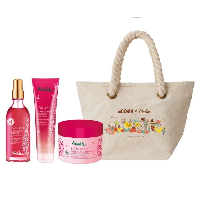 肌引き締めケアシリーズの3アイテムに、ムーミンと仲間達が描かれたバッグがセットになったホリデー限定コフレです。セルフマッサージに最適なボディオイルをはじめ、週2~3回ボディウォッシュ代わりに使って肌をなめらかに整えるボディスクラブ、肌にとろけるようになじんで引き締めるボディバームは、すべてスパイシーシトラスの甘すぎないフレッシュな香り。ホリデーシーズンに向けた引き締めケアを即スタートして。