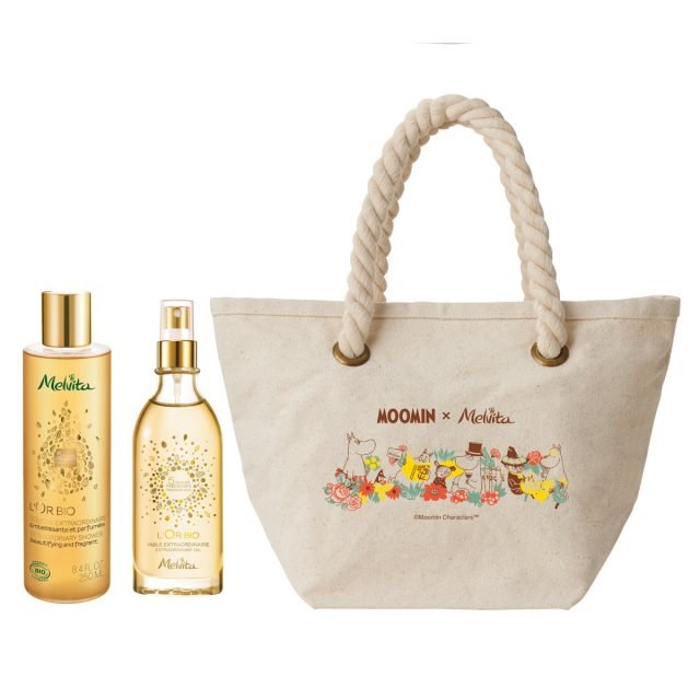 太陽の香りとしてファンが多いロルビオ エンリッチド エクストラオイル。シトラスからはじまり、華やかなローズやジャスミン、最後はヒノキやバニラの香りへと香水のように変化し、人々魅了します。さらに5種類のオーガニックオイルで肌にたっぷりの潤いと輝くようなツヤをプラス。限定コフレでは、アルガンオイルをたっぷり含む泡立ちの良いシャワージェル、ムーミン達が描かれたバッグがセットになって登場します。