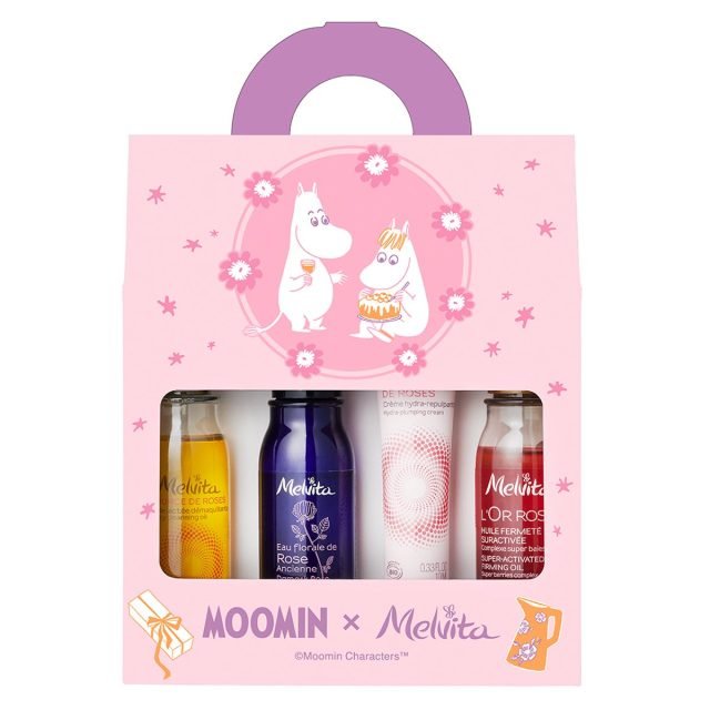 メルヴィータの人気アイテムがモバイルサイズになって集結。ピンクペッパー&ブラックペッパー配合で肌の引き締めケアにおすすめのボディオイル、ローズの豊かな香りとともにメイクを落としてなめらかに整えるクレンジングオイル、日中の乾燥ケアに最適なミスト化粧水、みずみずしいキメ肌をかなえるクリームがセットに。ムーミン達が描かれたホリデー限定パッケージもお見逃しなく。