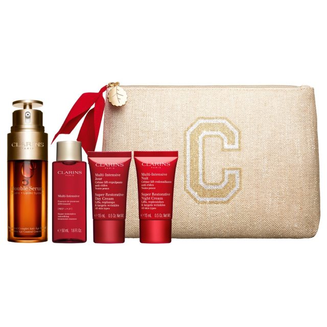 エイジングケア美容液「ダブル セーラム」は、20種類以上の植物由来成分が艶やかなハリ肌に導くと大人気。ホリデー限定コフレでは、異なる容量、テクスチャーから好きな「ダブル セーラム」を選べ、そこに大人の肌を潤いで満たし、ハリ&輝きを引き出すスープラシリーズの化粧水、日中用クリーム、夜用クリーム、オリジナルポーチがセットに。乾燥しがちな時期だからこそ、クリスマスに向けて肌のお手入れも念入りに。価格は選んだ美容液プラス¥3,850。