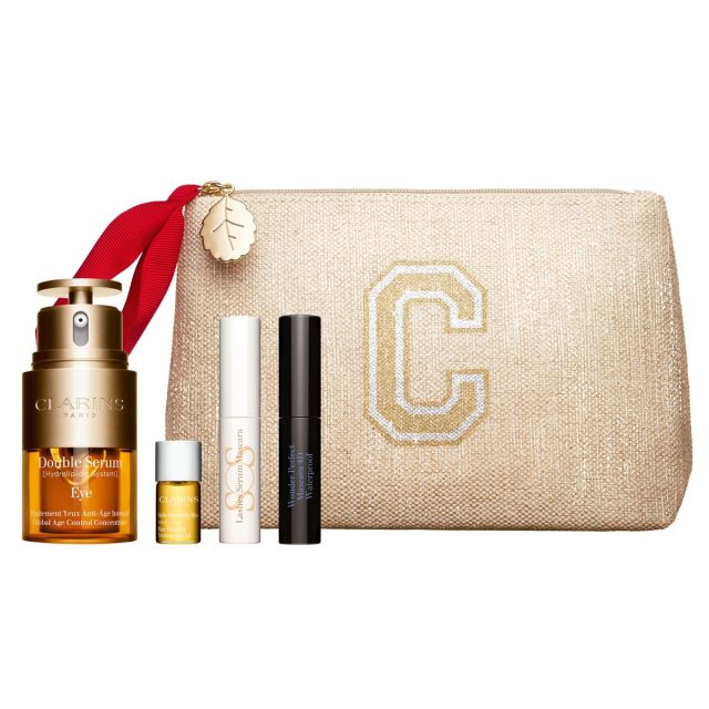 顔印象を左右する目元に着目したホリデー限定キット。素早くなじんでピンッとしたハリ感を演出する「トータル アイ インテンス」と、13種類の植物エキスが潤いを与えてハリ感をもたらす「ダブル セーラム アイ」のどちらか1品をセレクト。さらに、100%植物エキスとエッセンシャルオイルでしっとり保湿するフェイスオイル、まつげにハリ&コシを与えるケア用マスカラ、ひと塗りで長さ、ボリューム、カール、高発色をかなえるブラックマスカラがセットに。オリジナルポーチも使い勝手抜群です。セレクトした目元美容液によって価格が変動します。