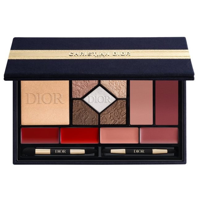 目元に上品な奥行き感を与える5色のアイシャドウ、表情までパッと明るく見せる4色のリップ、血色感を添えるチーク2色、さらには自然なツヤをプラスするハイライト1色をインした、これひとつでトータルメイクがかなう限定パレット。肌なじみのいい使いやすい色が揃い、特別な日だけでなくデイリー使いにも大活躍すること間違いなし! ネイビーブルーにゴールドバーをあしらったパッケージもエレガントで、手にするたびに心がときめきます。