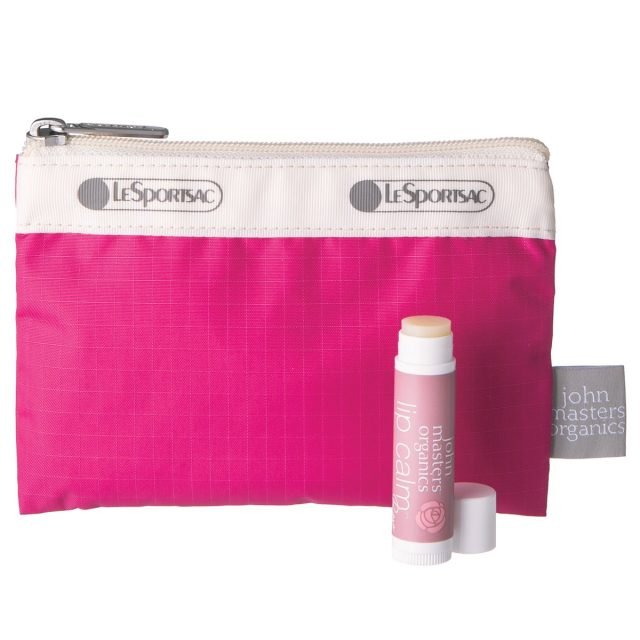 ニューヨーク発のライフスタイルブランド“LeSportsac”とコラボレーション。もち運びに便利なブロックピンクのミニポーチとリップクリームのセット。リップは、ミツロウなど6種のオーガニック保湿オイル配合で、ダマスクローズの華やかな香りの限定フレーバー。