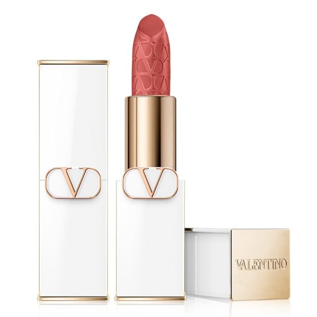 ブランドを代表するリップスティック「ロッソ ヴァレンティノ サテン」。ひと塗りで鮮やかに発色し、印象的な唇に導いてくれるのが魅力です。2023年のホリデーシーズンには、ホワイトにブランドロゴがあしらわれた限定パッケージが登場。100Rは温かみのある表情に導いてくれるローズヌード。