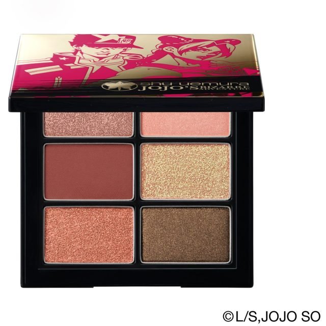 パッケージに主人公の徐倫とその父親・承太郎が描かれた、肌を美しく引き立てる6色入りの限定パレット。定番のピンク×ブラウン系カラーと思いきや、メタリック、パール、マット、ウェット、メタリック フォイルの5つの異なるテクスチャーが、ひと味違う目元印象を作り出します。色をブレンドしたりレイヤードしたり、使い方次第で目元印象は変幻自在!