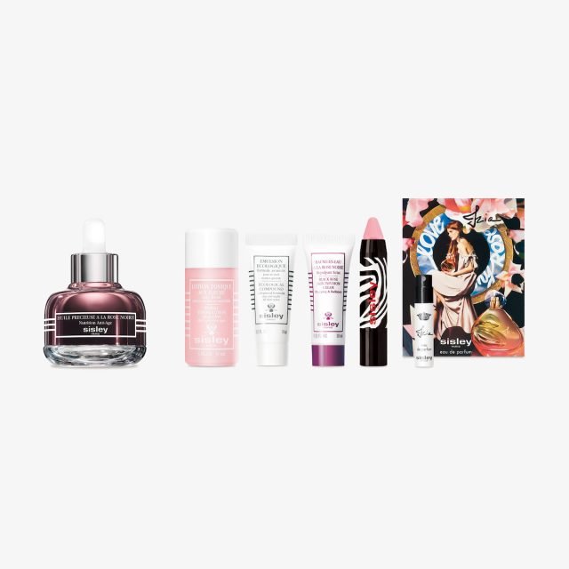 華やかなローズの香りとともに肌を潤いヴェールで包み込む、大人気トリートメントスキンオイル「ブラックローズ プレシャスオイル」を購入すると、化粧水、美容乳液、デイ&ナイトクリーム、リップバーム、フレグランスのミニサイズがセットに。化粧水はローズウォーターを贅沢に使用し、スッキリとした肌に整えます。フレグランスは特別なローズの香りを再現した透明感あふれる香りです。ローズで肌と心を満たして。
