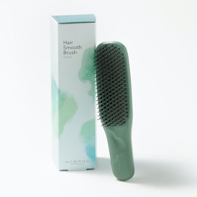 KOBAKOの人気ヘアブラシ「ヘアスムースブラシ(ハード)」が、今だけのくすみグリーンカラーになって登場。先端が球状になったプロテクションピンを約0.8mm間隔で植毛することで、頭皮を心地よく刺激しつつ、絡んだ髪もなめらかにブラッシング。丸洗いできるので、乾いた髪だけでなくシャンプーブラシとしてもおすすめです。